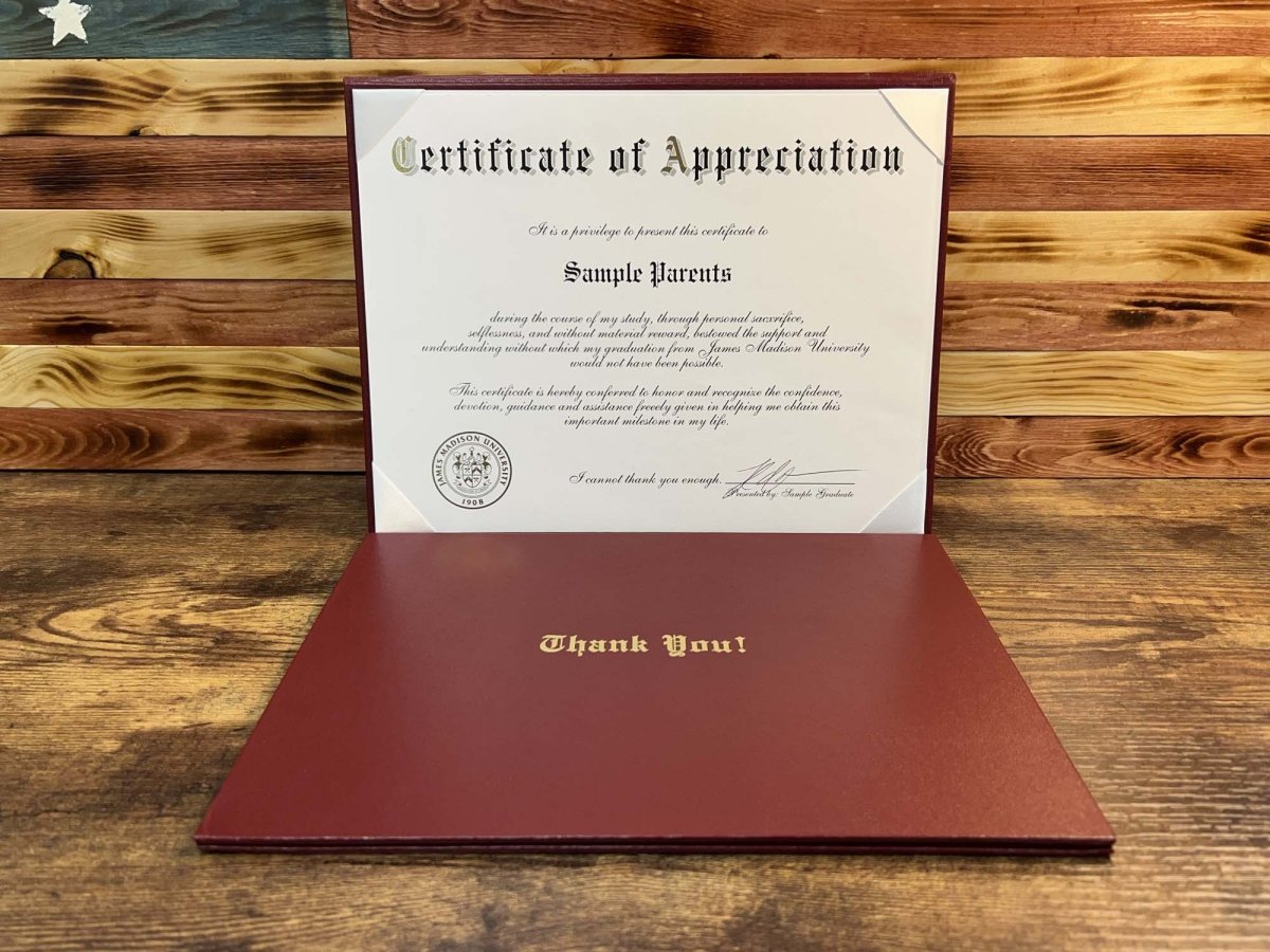 Each one can be customized with gold leaf elements for that added professional look and feel just like your diploma! Round it off with a custom Thank You cover for more protection and to make it even more personal and special.