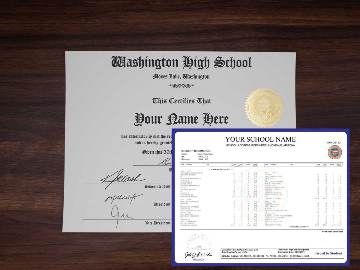 This novelty, real or replacement high school diploma and transcript package is a must for any school looking to provide quality documents to their graduates. They are also great for novelty, replacement, and as an extra copy or a Digital File to have for your records.